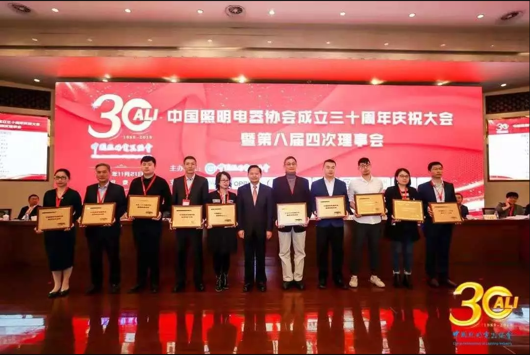 2019年11月21日,中国照明电器协会成立三十周年之际,对三十年来行业内涌现的优秀集体和先进个人进行表彰,共评选行业优秀集体181家,行业先进个人92名。尊龙凯时人生就博物联科技股份有限公司荣获大会集体奖项最高荣誉“中国照明电器行业品牌效益企业”,董事长李江淮先生荣获大会个人奖项最高荣誉“中国照明电器行业杰出贡献奖”。